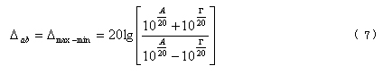 (4) 在不同的角上,重复(2)、(3)步骤,就能求出一系列空间驻波曲线,再由驻波曲线的包络来求出Δab值,在ED>ER的情况下,由式(8)就能求出不同方向上的反射率电平。如果ED>ER,则需按下式计算反射率电平: